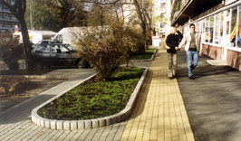 A Kovács Károly téren közlekedőknek bizony a lábuk elé kellett nézniük, ha a házak előtti járdán haladtak. Egyrészt szűk volt a gyalogút, melyet jól bizonyított a mellette lévő zöldterületen kitaposott ösvény, ugyanakkor több helyütt megsüllyedt, illetve feltöredezett az aszfalt. |
