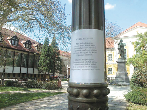 néhány napig kiragasztott versekbe botlunk majd a városban járva.