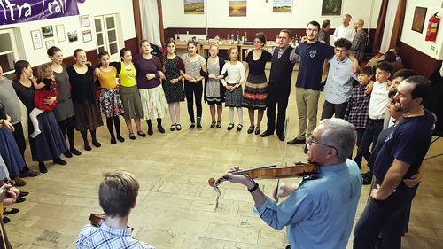 Az adott ünnepkörökhöz, vagy jeles időszakokhoz kapcsolódó alkalmakon fiatalok és idősebbek is örömmel és nem kényszerből tanulnak meg tánclépéseket, táncokat – mesélte Hardi András, a táncházak szervezéséért felelős ötletgazda. A programot a régi néphagyományok tisztelőjeként és felelevenítőjeként is elismert néptáncos házaspár szervezte, akiket a Nagyváthy Néptáncegyüttes tánckarvezetőiként ismernek a térségben. A farsangi ünnepkörhöz kapcsolódóan szervezett zenés-táncos mulatság talpalávaló muzsikájáról ezúttal a Zalaegerszegért díjjal kitüntetett, egy évtizede működő Harangláb népzenei együttes tagjai gondoskodtak, Schreiner Jenő zenekarvezető prímás irányításával. Kovács Péter a dudát, furulyát és a hegedűt szólaltatta meg, Varga Zoltán pedig a nagybőgő húrjai közé csapott. Szatmári László népzenész pedig a brácsát bírta szóra nagy átéléssel. Ezúttal nem voltak ugyan majd százan, mint szilveszterkor, de a vidám alkalom a testnek és a léleknek is megadta azt, ami neki jár. A helyi Fűszeres Gyermek Néptáncegyüttes vezetője a közkedvelt táncházakon túl Cserszegtomajon és Zalaváron is szervezett már nagyon népszerű tánctáborokat, ahol koreográfia szintig más megyék táncait is megtanulhatták az alsós és felsős diákok.